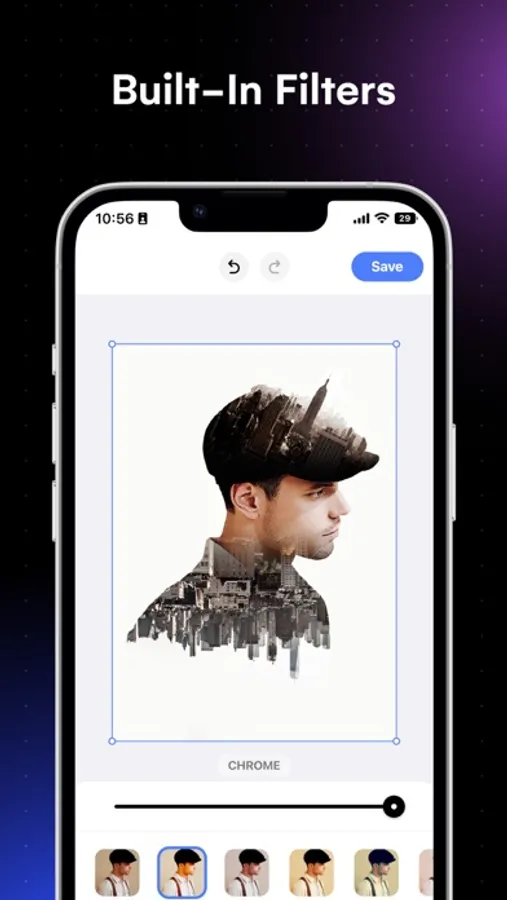 Discover the power of creativity an unleash your artistic touch with Blend Photos. It offers a range of features at your fingertips - from the basics like cropping and rotating your photos to more complex tools like adding creative filters and overlays. With the selection of highly customizable effects, you can craft photos that look proffesional and polished in just a few seconds.