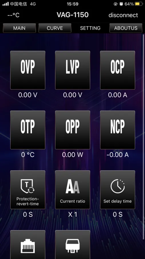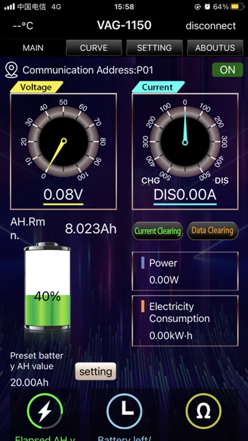 The VAG series volt-ampere meter is a new type of coulomb counter that can measure various physical parameters such as voltage, current, power, charge and discharge capacity, watt-hours, time, etc. It can also set parameters to realize multiple protection functions such as over voltage protection, under voltage protection, over current protection, overpower protection, over temperature protection and time limit protection.The meter can automatically identify the direction of the current, and can monitor the battery capacity in real time and display the measured data in use color LCD screen. The VAG series voltage and current meters add voltage and current curve display and export functions on the basis of the original functions. At the same time, the mobile phone APP and host computer can be used to control, and the firmware can also be updated and upgraded in real time.