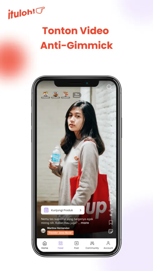 Ituloh is Indonesia’s #1 community-based short video app. Discover thousands of informative and anti-gimmick content from real communities. Find video recommendations on fashion, travel, campus, parenting, health & workout, gaming, investment and much more. Tired of seeing fake content from paid influencers? Download our app to find honest reviews from everyday experts. If you’re a creator looking to share your authentic experience, Ituloh is the Indonesian content revolution made for you. Download now!