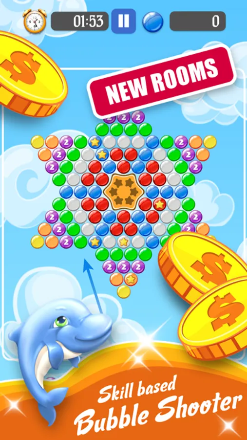 A brand new multiplayer BUBBLE SHOOTER GAME with a SPINNING TABLE where you can WIN REAL CASH PRIZES!