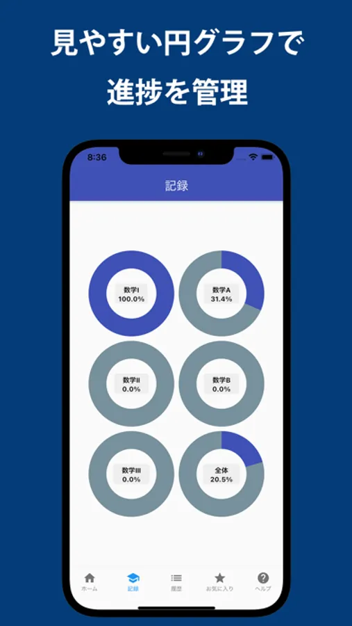 勉強の進捗をグラフで管理でき、モチベーションの向上にもつながります。