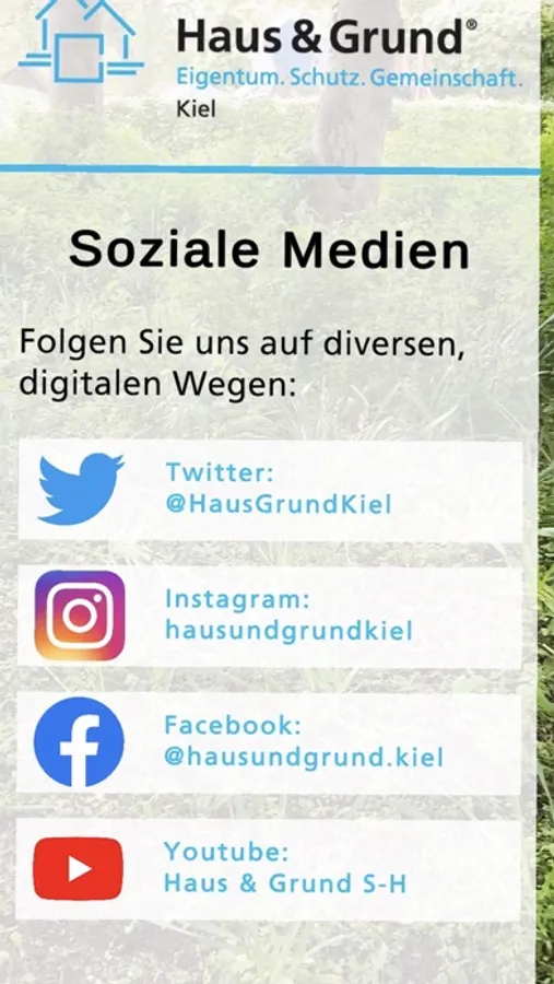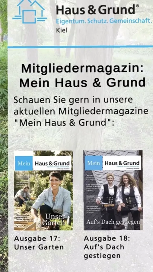 The Haus & Grund Kiel app brings augmented reality in the truest sense of the word in prepared printed matter (e.g. the image brochure 2021). When the pages are scanned, the display shows additional multimedia content like remarkable videos, 3D illustrations, sounds and so on. Experience our digital content on your own device! The app also gives you access to news from the association and to the most important documents for tenants.