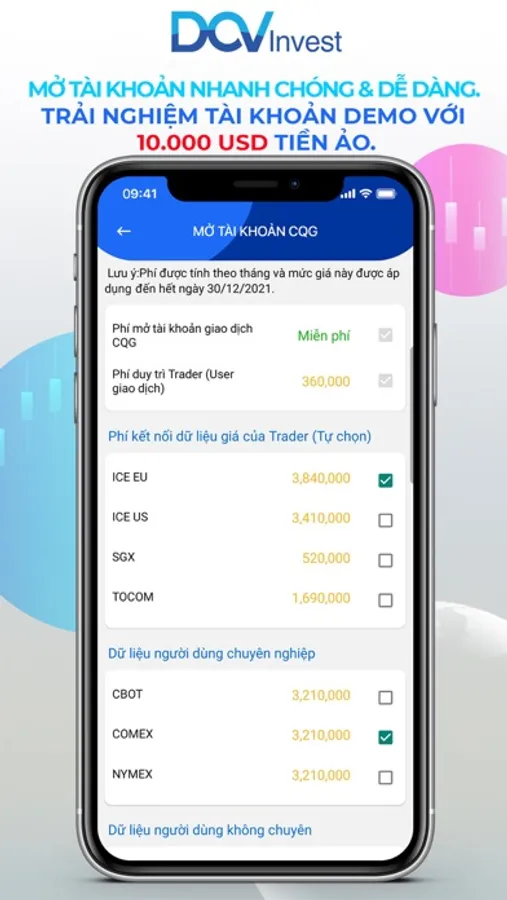 Trải nghiệm nền tảng giao dịch của DCV Invest với tài khoản demo có sẵn 10.000 USD tiền ảo. Mở tài khoản demo miễn phí trong vài giây