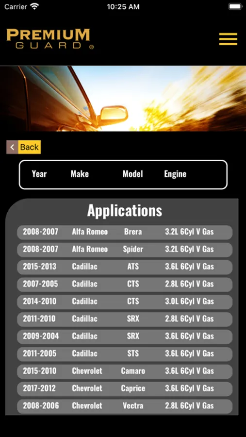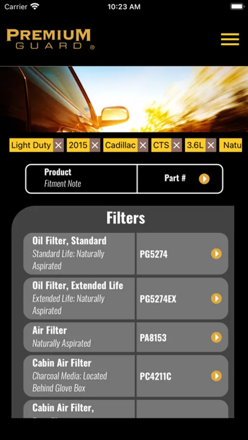 Choose the classic “Search By Vehicle” lookup to search by your vehicle’s year, make, model, and engine or switch to the updated “Dynamic Search”. With the dynamic search box, you can search for your vehicle by typing part or all your vehicle’s description and selecting from the suggestion list. You can also use the dynamic search box to enter a Premium Guard part number to get to the product information page or enter an OE or competitor part number to interchange it to a Premium Guard part.