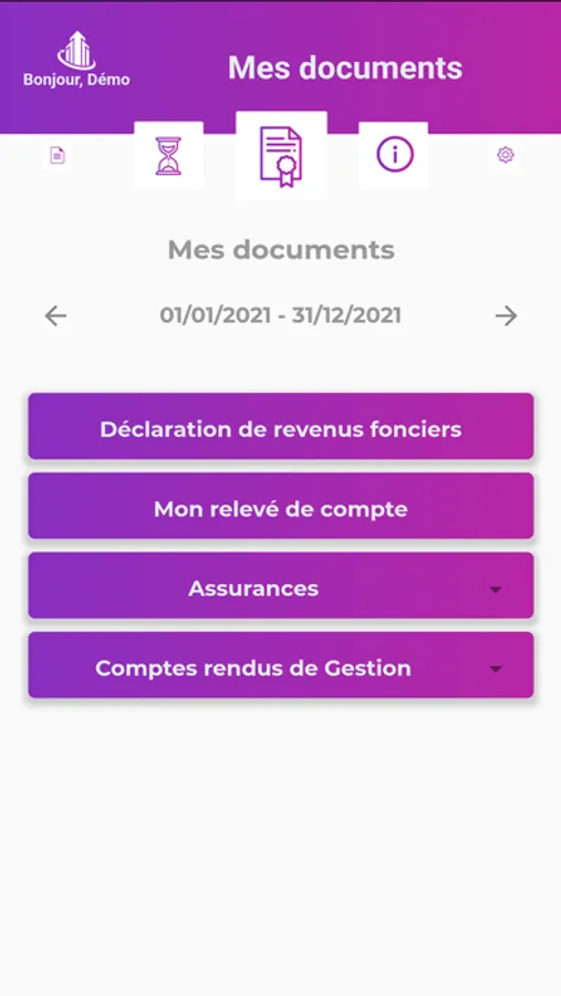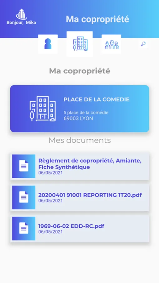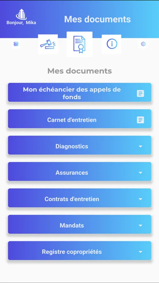 - consulter les documents de la copropriété (Carnet d'entretien, les contrats, les évènements dans la copropriété...),