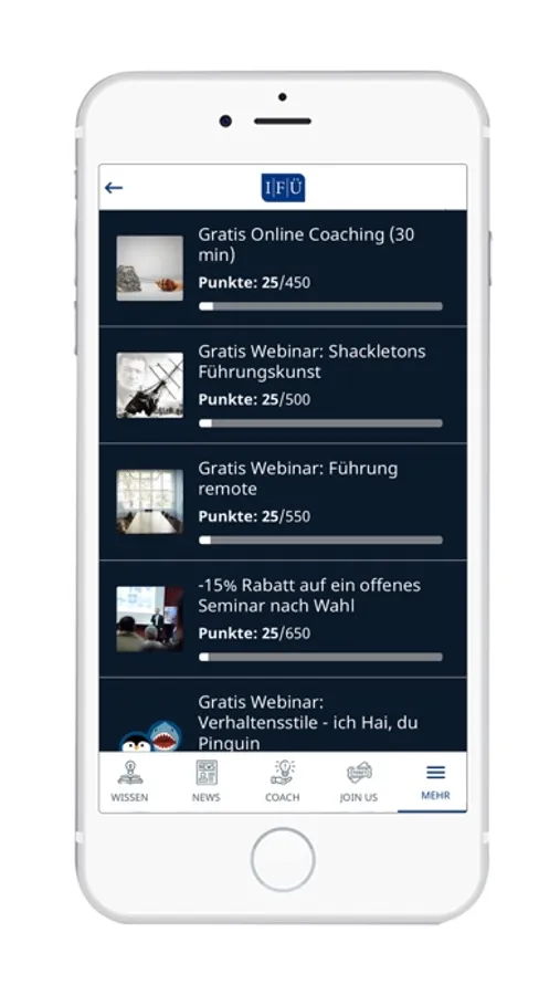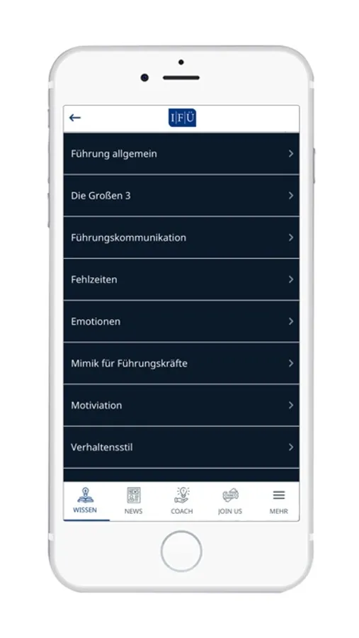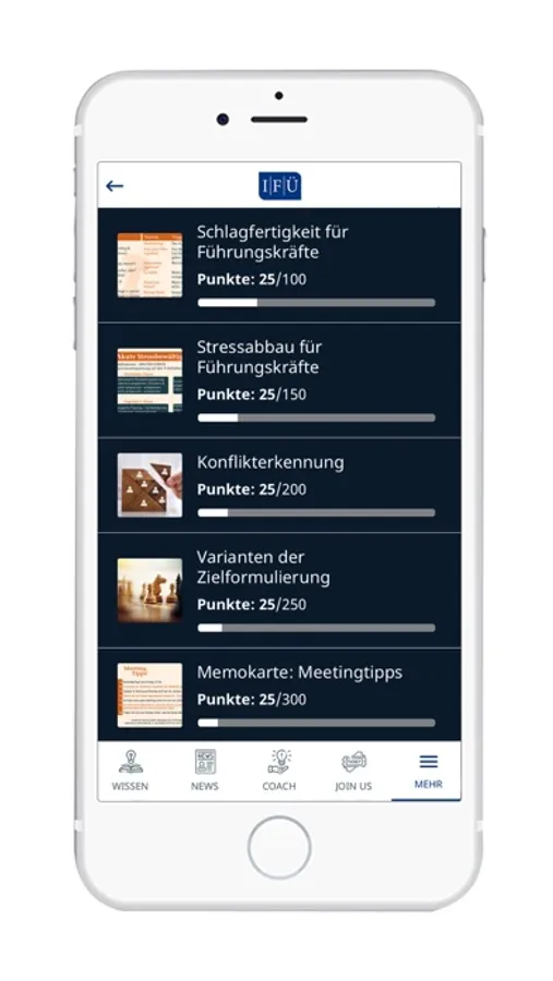Die IFÜ-App ist Ihr digitales Trainingsprogramm, mit dem Sie die Lernunterlagen all Ihrer besuchten Seminare und Schulungen immer mit dabei haben.