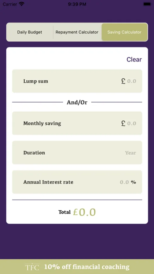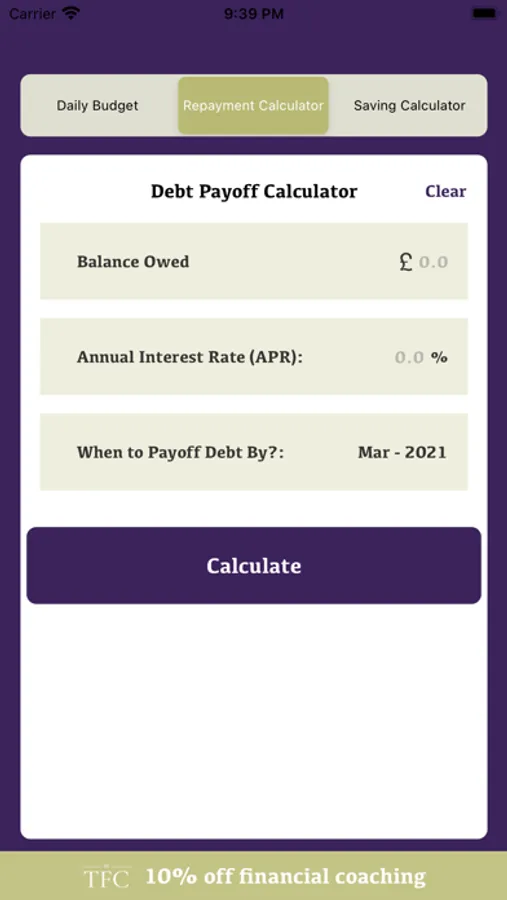 With a built in savings calculator you can find out how much your money could grow to over numerous years and if you have any debt, you can find out how much you need to pay on it, to clear it by a specific date you pre-select.