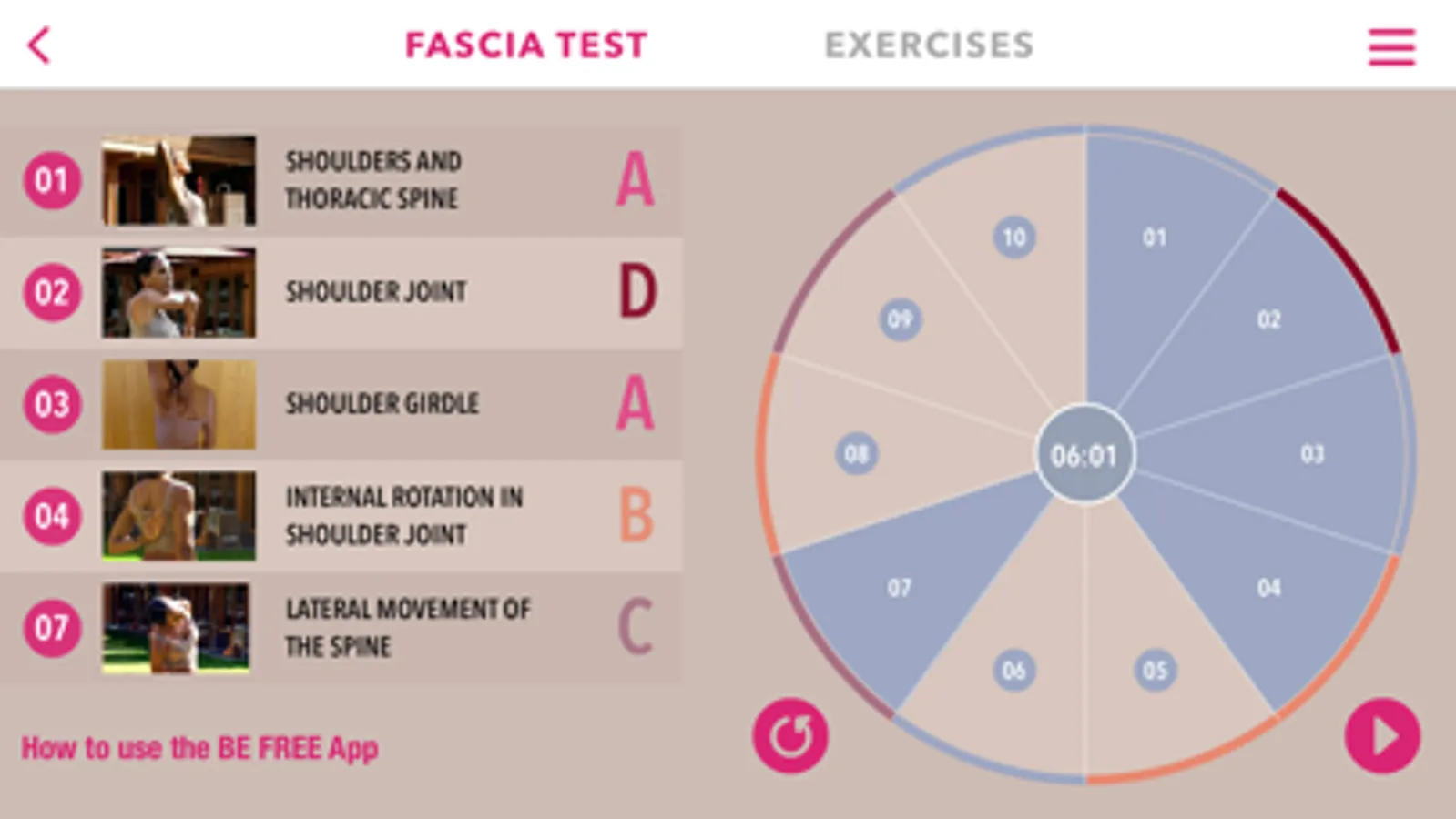 BE FREE is a new training that allows you to test the functionality of your fasciae - and in case of limitations - to treat them with fascial swing movements. By means of a free 10-minute test, you will examine the mobility of your fascial chains. Depending on your personal results, limitations in fascial health - such as tight or sticky fasciae that can cause tension, immobility and pain - will become apparent.