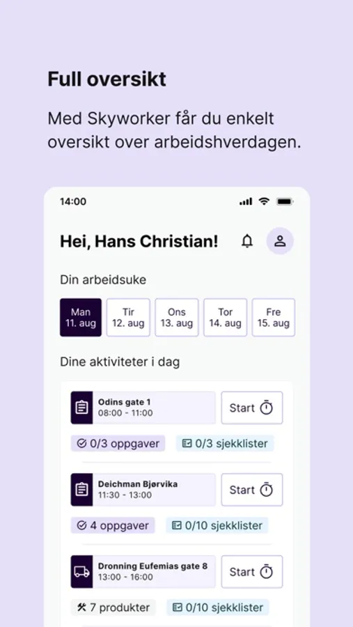 Skyworker har et hemmelig våpen: innebygd smart funksjonalitet som automatiserer timeføring på daglig basis.
