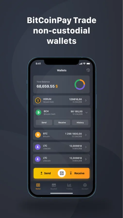 BitCoinPay Trade is a reliable and secured crypto exchange. Free BitCoinPay Trade application gives users the opportunity to purchase and sell crypto currency for fiat money, providing services for storing crypto currency in a multi-currency wallets.