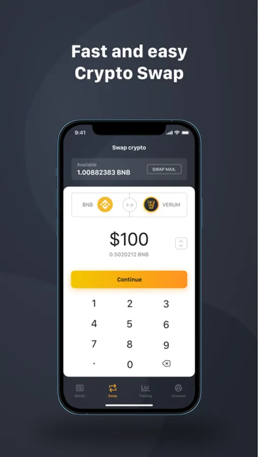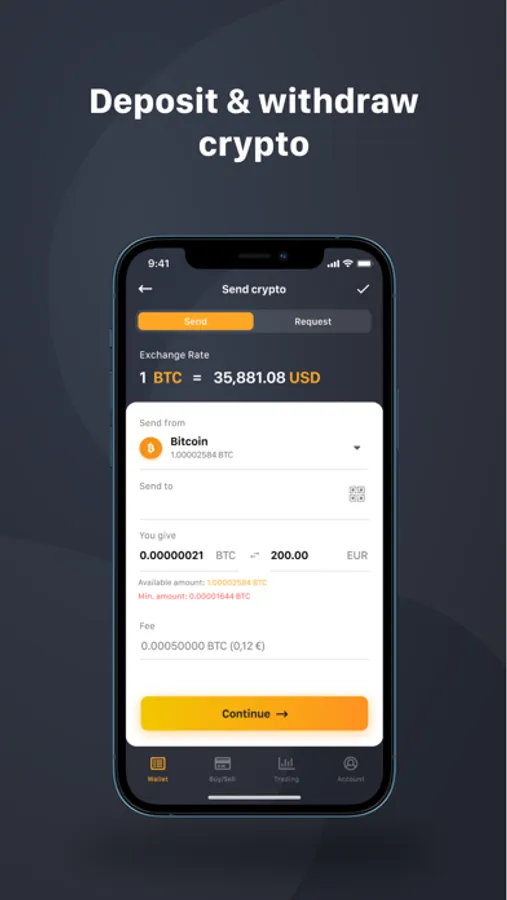 Fiat-to-crypto converting for USD and EUR.
