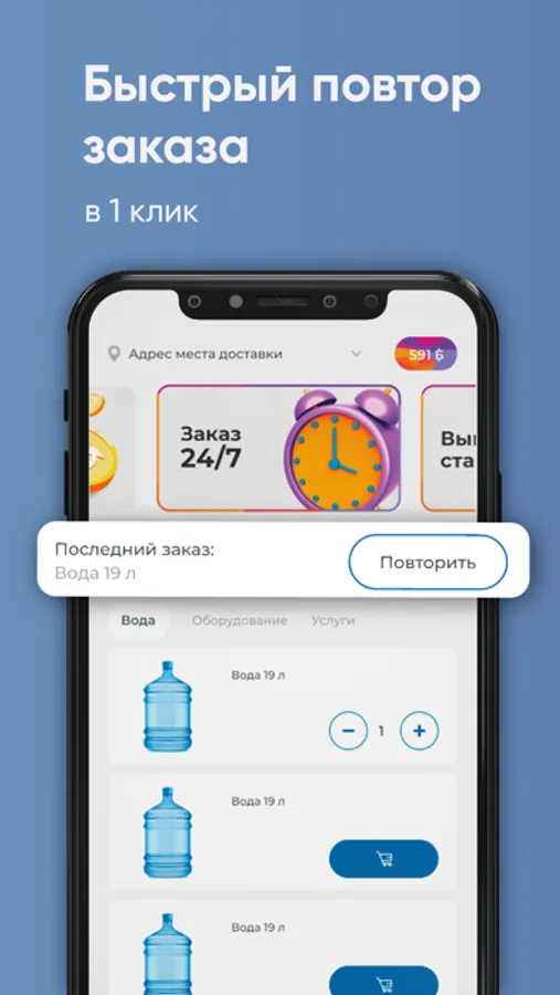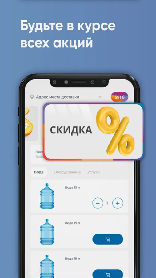 Заказать воду в приложении «AquaYar Чебоксары» просто и быстро. Все товары собраны по категориям. Добавляйте нужные позиции в корзину и оформляйте заказ в любое время суток.