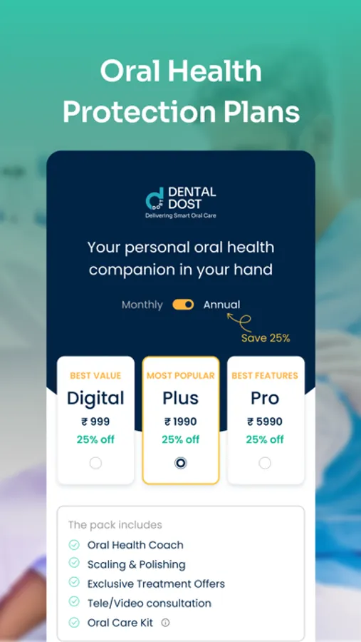 DentalDost is a modern age Dental Care app, which prioritizes preventive oral care over reacting too late with a surgery.