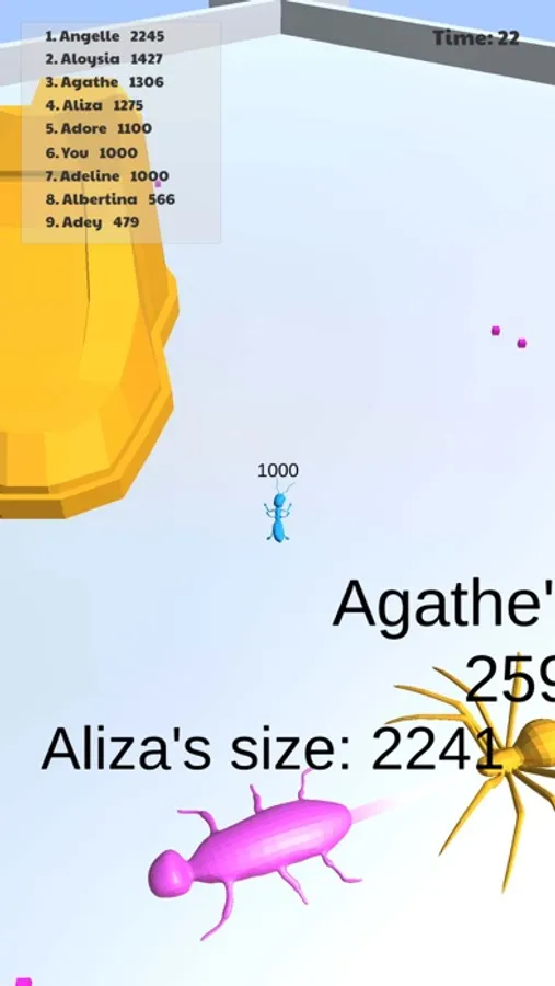 你是一只小蚂蚁,寻找食物并吃掉,不断变大。