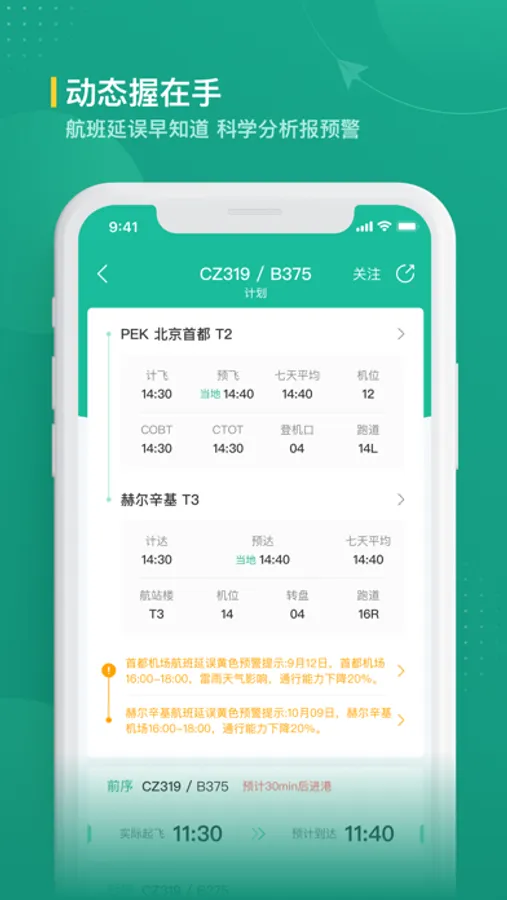 2.支持航班动态查询和推送,延误预警早知道。