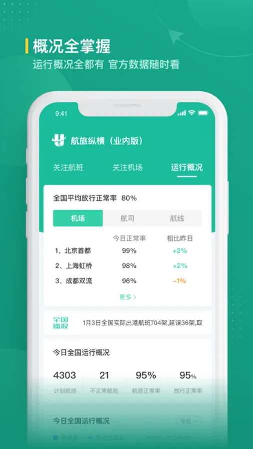 1.全国航班运行概况一目了然