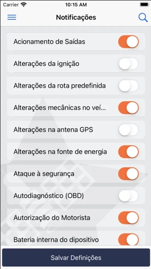 - Notificações push personalizadas, onde o próprio usuário escolhe quais tipos de alerta deseja receber através de push. São 30 categorias de alertas disponíveis ao usuário, dentre eles: alteração de ignição, limite de velocidade violado, ataque a segurança, pânico, entre outros.