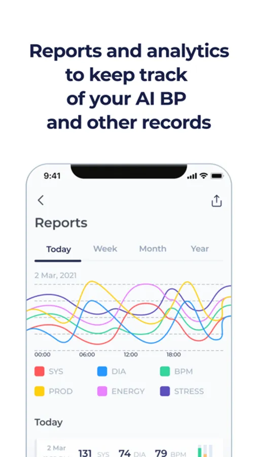 -Reports to show trends in your AI BP, Heart Rate, Productivity, Energy, and Stress.