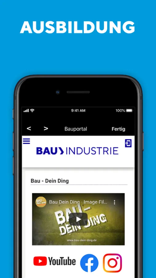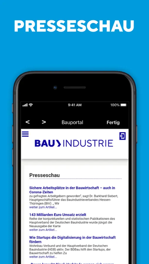 Mit der BAUINDUSTRIE APP unterstützen wir Sie sich zu aktuellen Themen, politischen Entwicklungen, Veranstaltungen, Podcasts, zur Berufsausbildung, Berufsberatung und Weiterbildung an einer Stelle zu informieren. Die BAUINDUSTRIE APP fungiert als digitale Ergänzung zu unseren Kampagnen im Taschenformat.