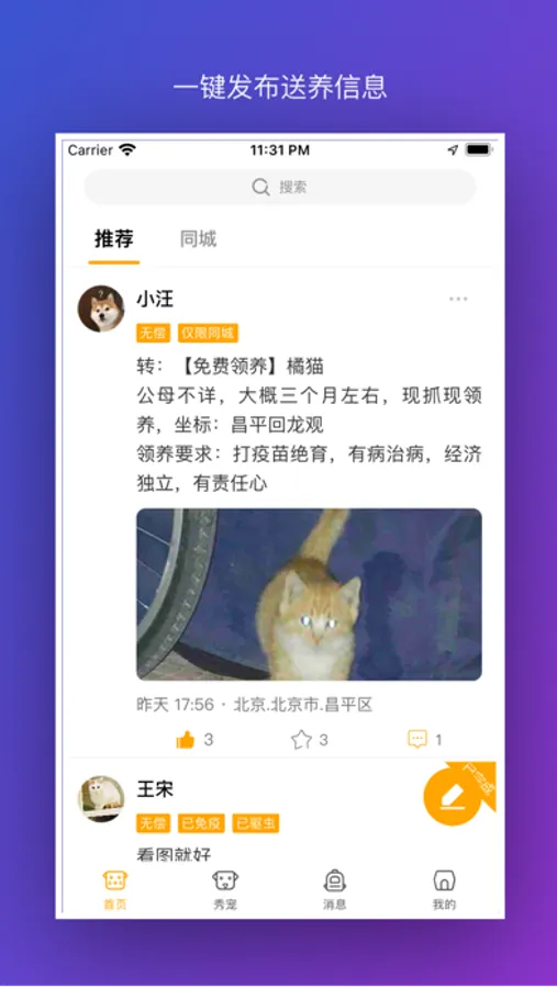 一键秀出宠物可爱瞬间,交流宠物萌照。