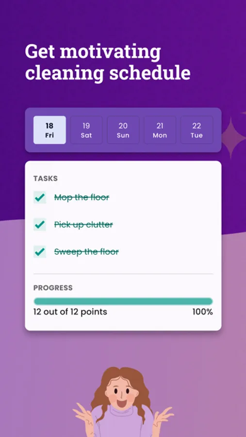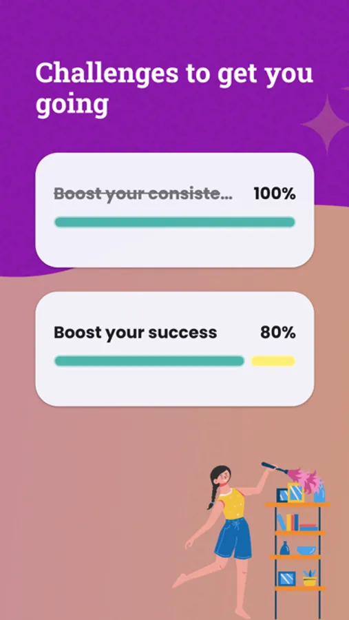 Earn reward points for each task on the chores chart and complete different cleaning challenges within the app like the Consistency Challenge. Stay focused on keeping your home spotless and tidy.