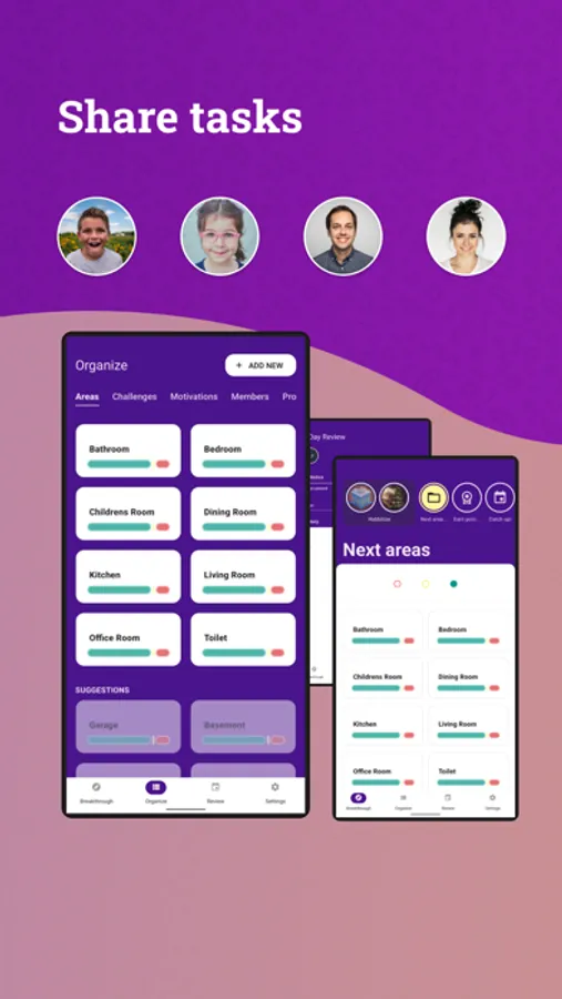 Chores are not only your duty! Delegate and manage chores with your spouse, kids, or roommates by inviting them to Housy. Share tasks, complete chores together, or plan and execute the house cleaning schedule in a smarter way.