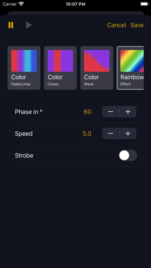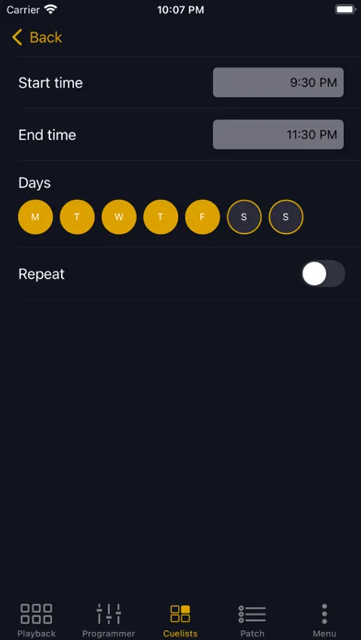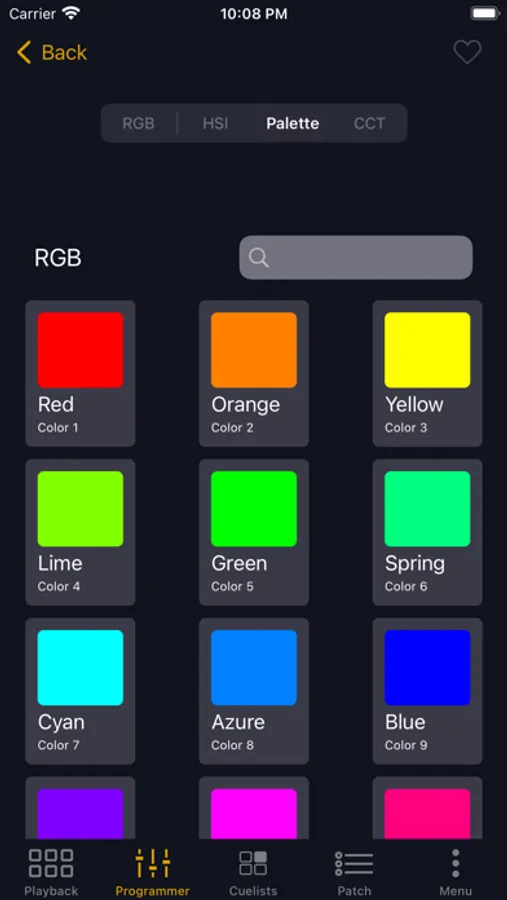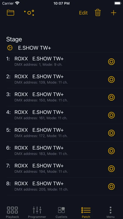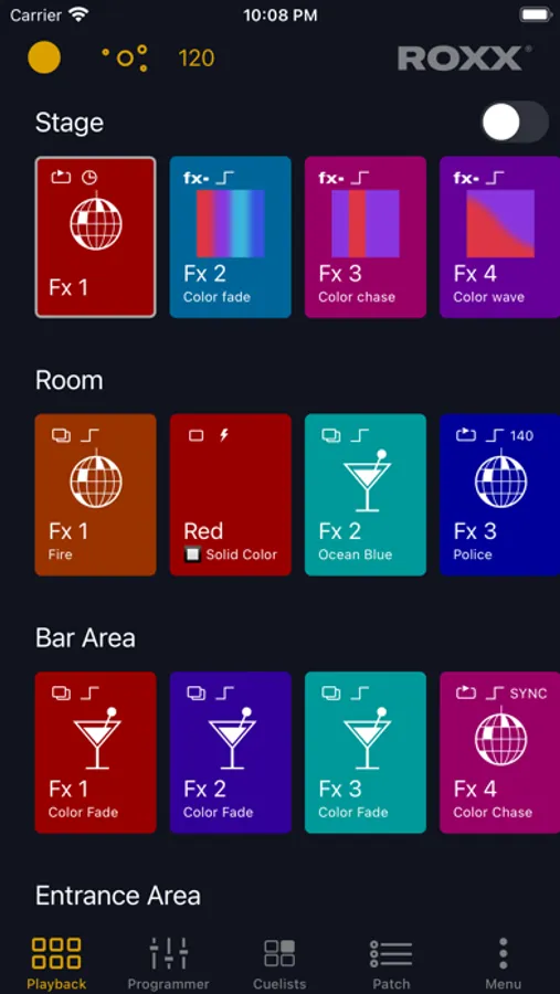 The Playback page allows a perfect overview of all your sections and scenes and offers direct access to your own light show.