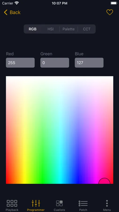 Various color modes are immediately accessible, such as RGB, HSI, linear CCT including predefined white light templates, green/magenta shift and a huge variety of preset LEE matched color filters. ROXX® color calibration ensures excellent white tones precisely on the black body curve and performs color matching across the entire range.