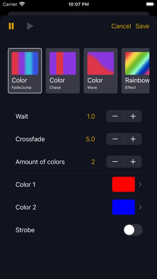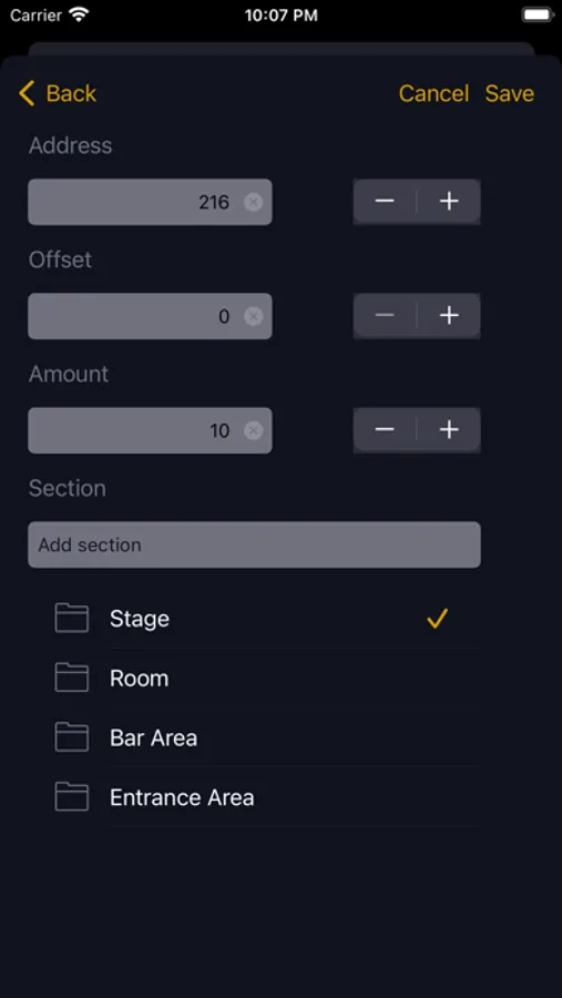 Endless numbers of lighting scenes can be generated for each of your sections, and one scene per section can run simultaneously.