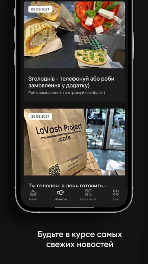 Кожен гість зареєструвавшись в додатку LaVash Project cafe отримує можливість накопичувати бонуси у вигляді cash back, та потім розраховуватися ними за улюблені страви.