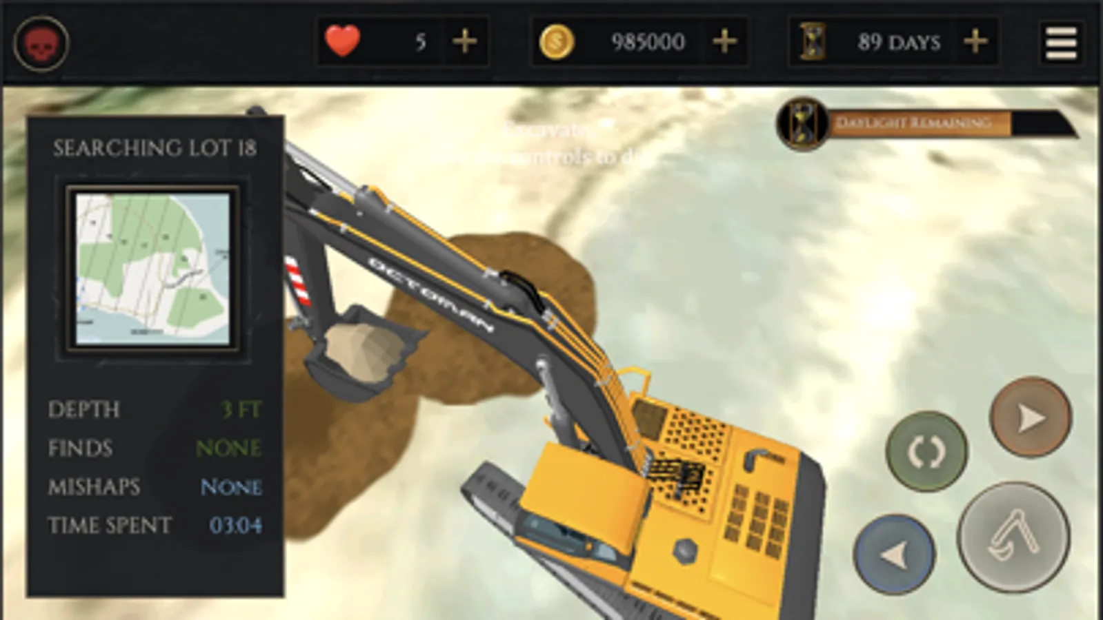 Excavator – choose an area to excavate and dig up to 30 feet deep