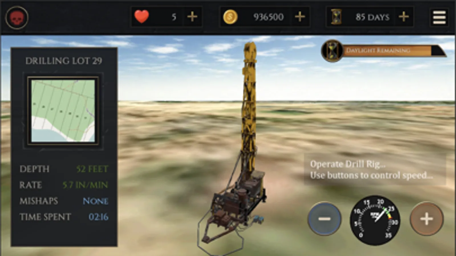 Core Sample Drilling Rig – choose a point and drill to extract core samples revealing potential finds up to 200 feet underground