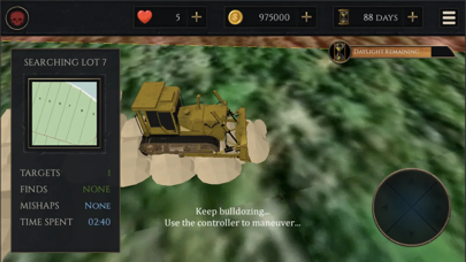 Bulldozer – bulldoze one lot per day, unearth objects buried up to 10 feet deep