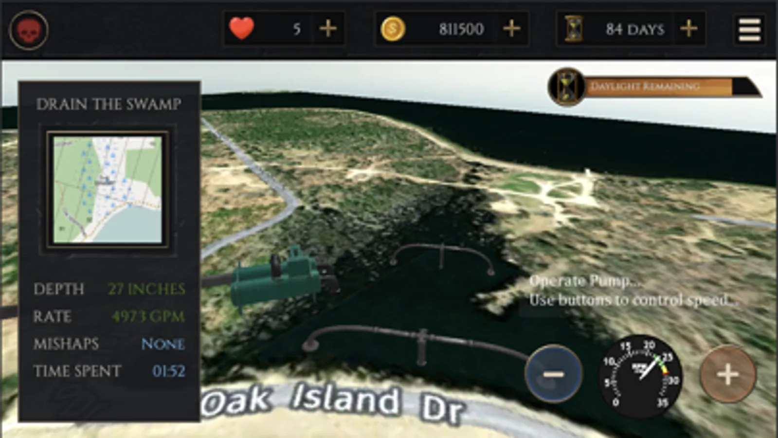 Drain The Swamp – pump the water out of the swamp to enable metal detecting and excavating