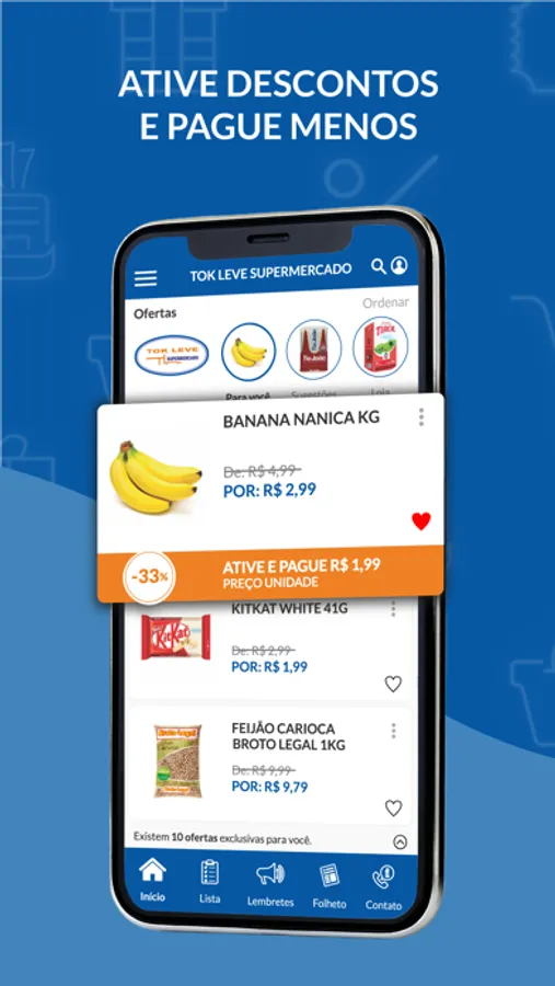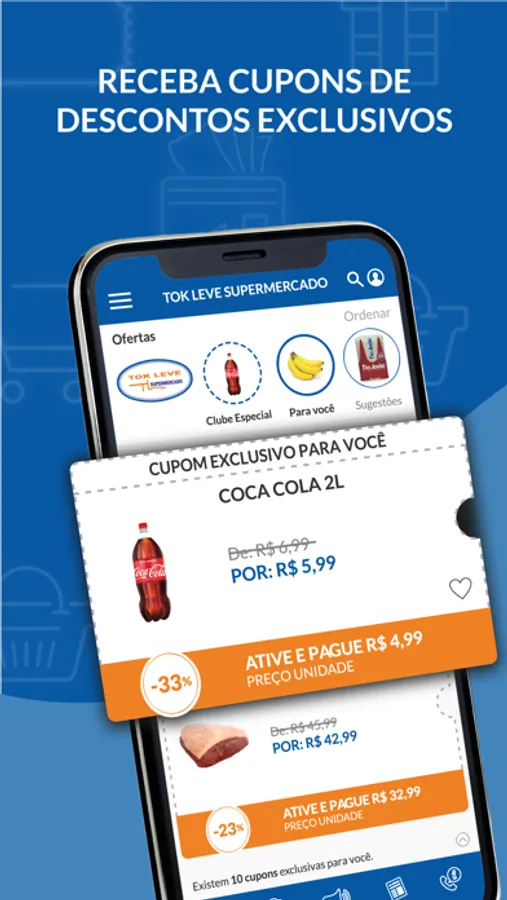 Viu quantas vantagens? Comece a aproveitar tudo isso, fazendo o download gratuito do aplicativo Tok Leve Supermercado.