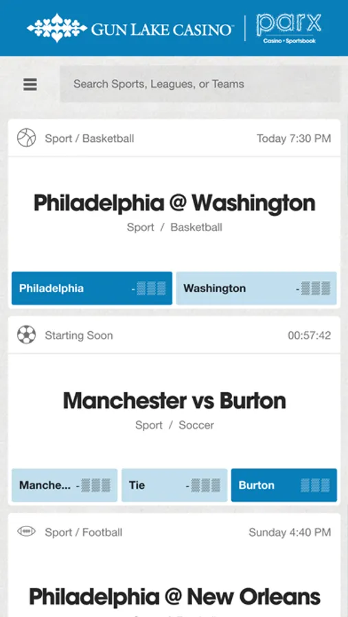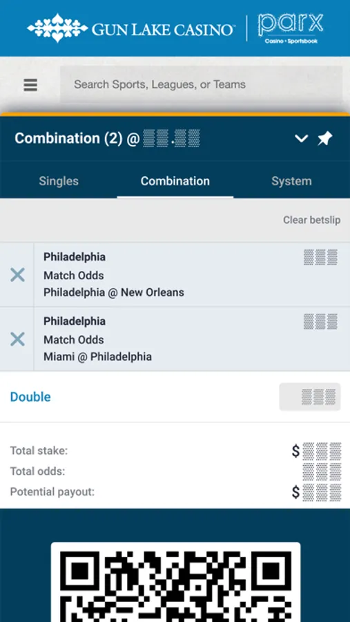 The Gun Lake Betslip Builder is the ultimate tool for retail sports bettors. From the palm of your hand you can view all of Gun Lake Sportsbook's betting odds to prepare your bets in advance. The Betslip Builder is available 24 hours a day, 7 days a week. And it will always have our Sportsbook's odds for you in real time. Every bet type is available to see on the Betslip Builder: spreads, moneylines, parlays, props, teasers and more. You can even prepare your sports bets from the Betslip Builder and it will produce a QR code that you can take to any teller at the Gun Lake Sportsbook to confirm your bets.