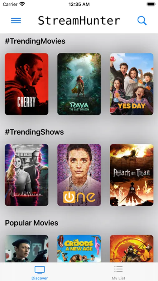 Search and discover the top trending movies and tv shows, get similar recommendations and add them to your list.