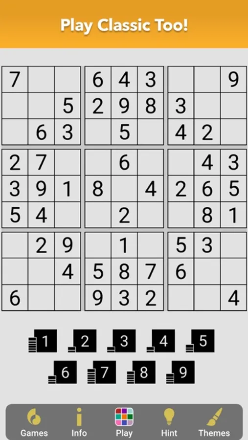 If you don’t want your hand held or you prefer a classic black and white sudoku grid, you can always access good old fashioned original sudoku from the play menu.