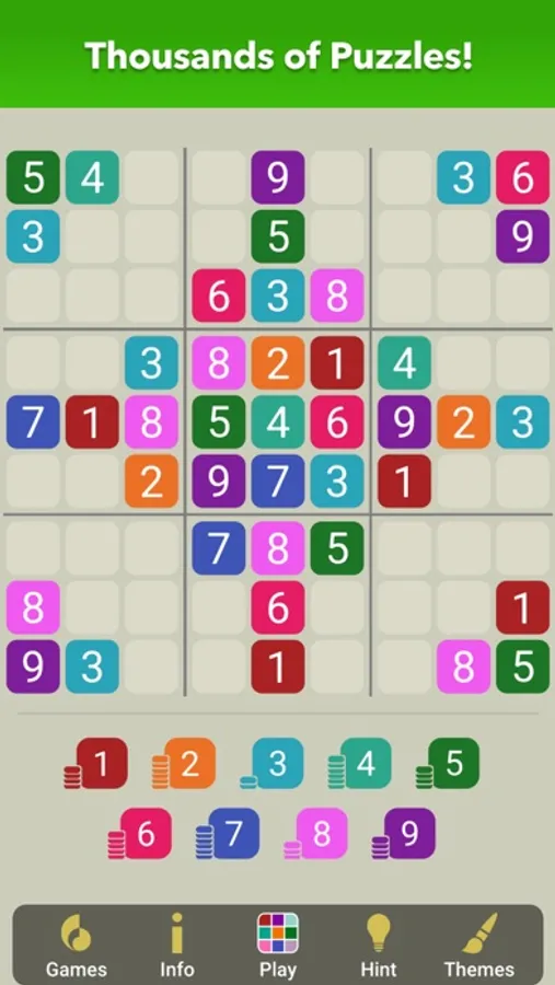 Just start easy! Truly train your brain to understand new sudoku puzzle logic without complication or the strain of looking at black and white grids. Start training by playing smaller sudoku puzzles and harness the power of color and your brain will make more logical decisions! And as you become a sudoku puzzle solving master, adjust your difficulty to hard for a break from the now too-easy sudoku puzzles from your sudoku infancy!