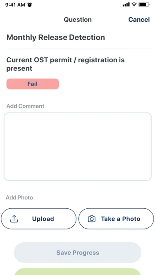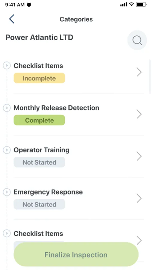 The protean iOS application provides a digital means to complete customized regulatory compliance inspection checklists. Inspectors are able to view attributes of a regulated facility and associated equipment in-app. The app leads inspectors through predefined custom inspection workflows that incorporate preliminary and follow-up questions drawn from regulatory requirements. The app allows the inspector to cite compliance deficiencies as appropriate and create a digital report notating whether a facility is in compliance or not. The application utilizes the iOS device’s camera, GPS, touch screen, and ability to enter comments to capture accurate compliance data and clearly identify and communicate the inspector’s findings and citations in the report.