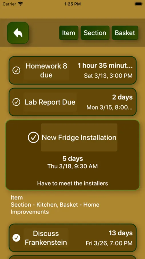Use Banana Plan for your personal planning, organizing, and note taking in a local, secure location, inaccessible from the internet, for your privacy and convenience. A smooth highly versatile interface lets an individual keep track of anything they don’t want to forget and keep an easy heads up on upcoming due dates, events, and timelines. Create Baskets to hold any size of category, then fill successively with Sections and Items for quick clear structuring and viewing. Applicable for any planning, scheduling, or organization, use Banana Plan to list, detail, and keep an eye on anything upcoming in your life. Not sure how to do something? Visit the Info page for helpful instructions. Your ideas matter, stop putting them all on the same one-page list to be lost and forgotten.