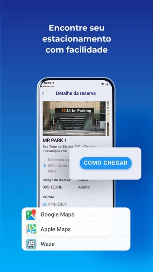 . Encontrar o estacionamento mais indicado para a sua localização atual ou o endereço de destino