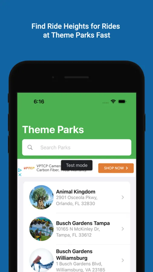 Tired of having to scroll through endless pages in official parks apps just to get the ride height info? Get ride heights for popular rides nearly instantly so you and your family can get back to having fun!