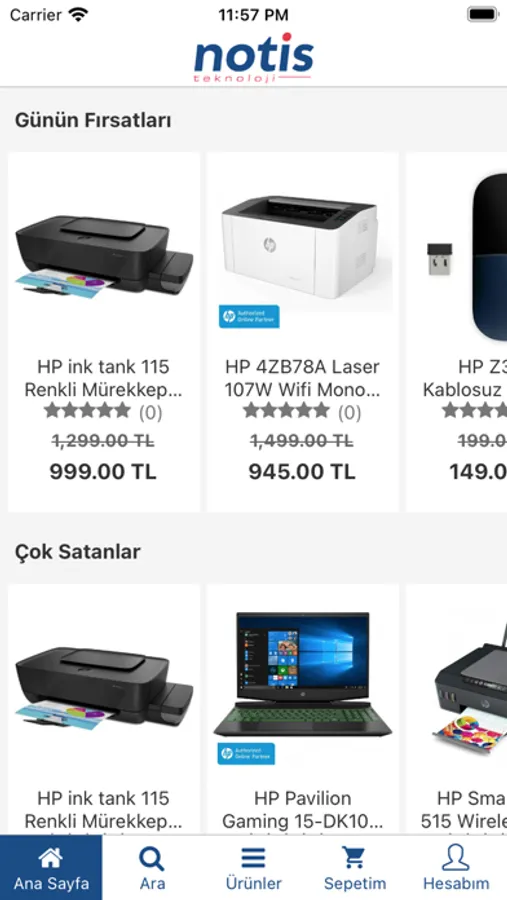 Notis Teknoloji uygulaması ile bilgisayar, yazıcı ve aksesuar ürünlerini inceleyebilir ve satınlabilirsiniz.