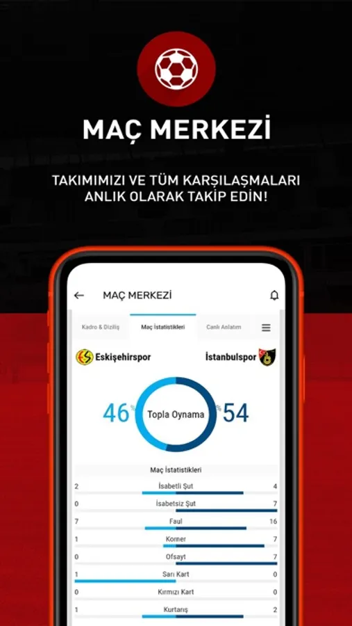 - Eskişehirspor Uygulamasında Canlı skorlar ve maçlardan anlık bilgileri görebilirsiniz