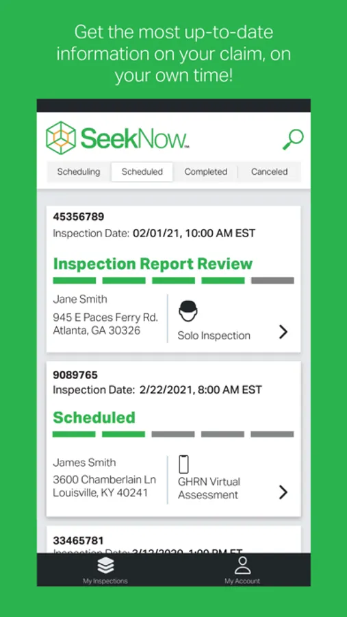 • Schedule claims directly from the app, real-time inspector tracking, virtual live video capability directly with field inspectors and much more!