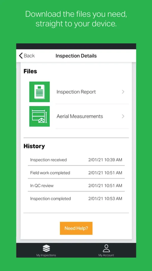 • Download inspection reports directly to your device once a claim has been completed. The measurement files and supplement materials are also available to download to your device.