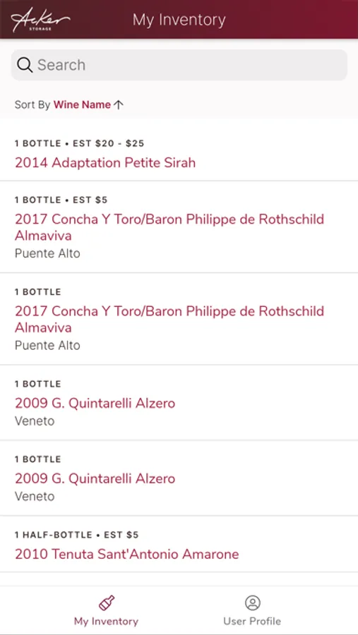 The Acker Storage mobile app allows our customers to view and manage their wine inventory while on the go. You can view your entire inventory and get details about each wine.