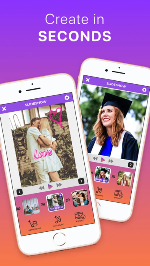 It's that simple! Now you can share your slideshow with your friends and family on Facebook, Instagram, Youtube and more. Perfect for your special days like birthdays, weddings, anniversaries, graduations, etc.