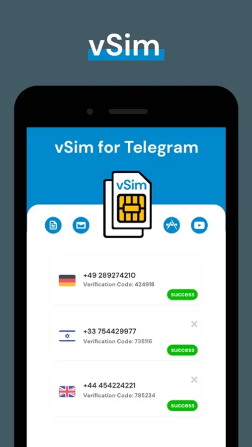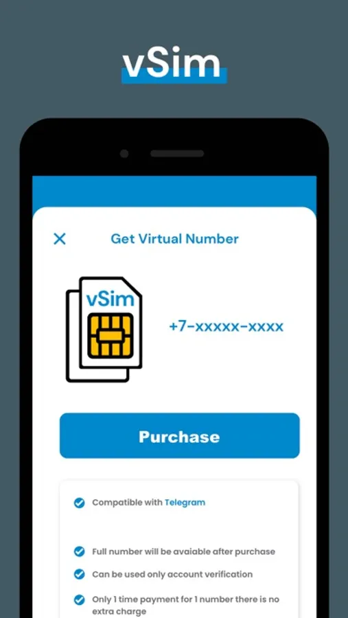 vSim provides clean, private, non-recycled phone numbers guaranteed to work with Telegram.